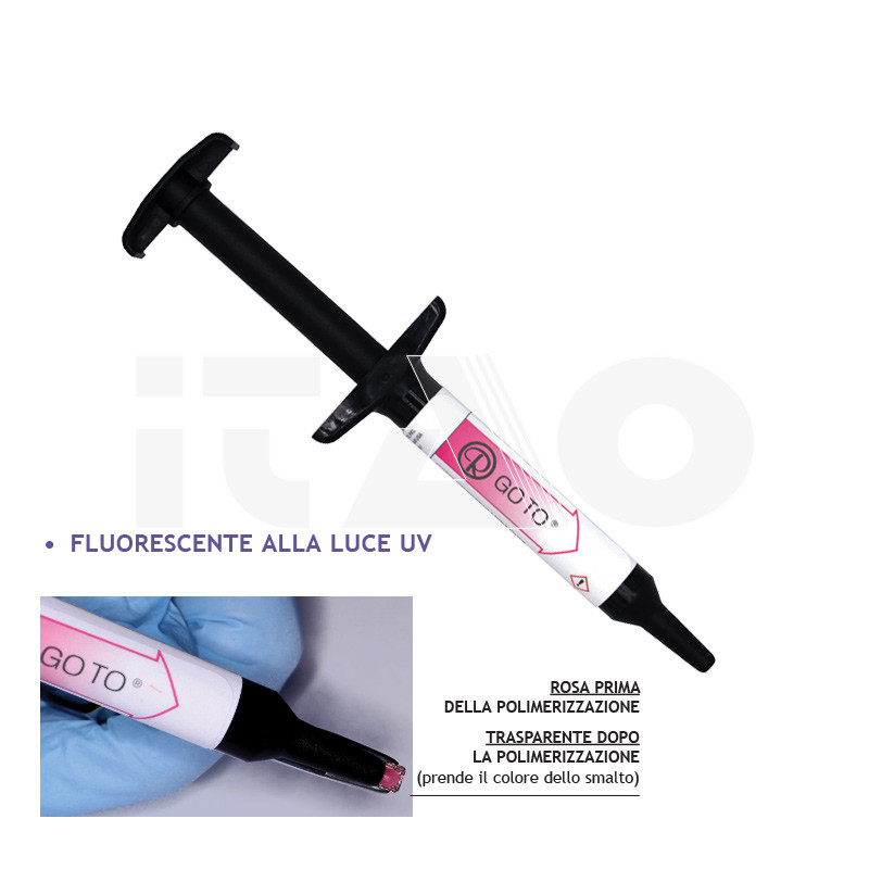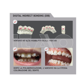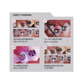 Illuminando la superficie del dente con una lampada UV dopo il bonding (o dopo il debonding), la pasta in eccesso rimasta sul dente può essere facilmente rimossa per garantire la completa pulizia.