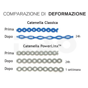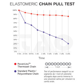 Le catenelle PowerLinx™ conservano fino all’85% della forza elastica originale anche dopo 6
