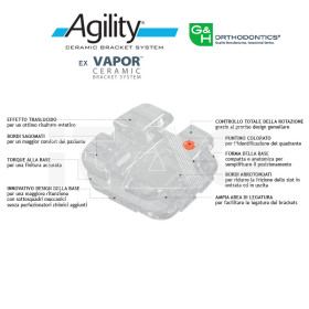 AGILITY Ceramic di G&H® Orthodontics realizzato in ceramica policristallina (Ceramic Injection Molded).