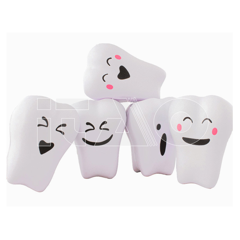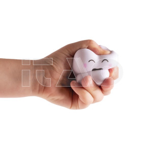Antistress in schiuma poliuretanica a forma di molare. Con diversi volti serigrafati.