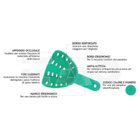 Ideali per impronte in ortodonzia. Le particolari perforazioni assicurano una ritenzione superiore con l'alginato. Massimo comfort al paziente grazie ai bordi arrotondati.