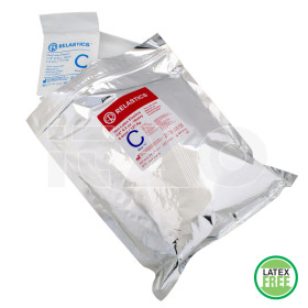 Confezionati in busta di alluminio sigillata e resistente alla luce, contenente 50 bustine richiudibili monopaziente da 100 elastici ciascuna.